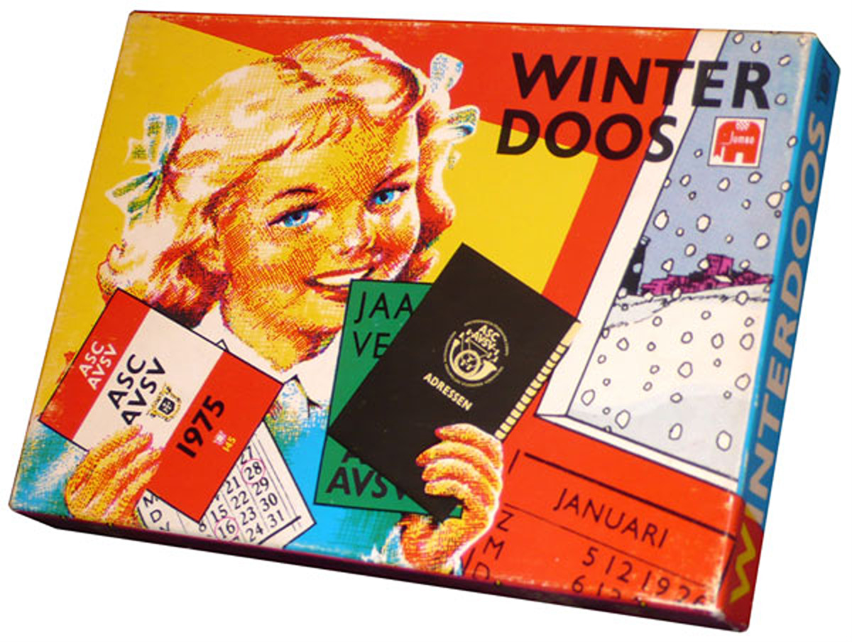 (12 oktober 1974)Illustratie in vier kleuren voor een studentenalmanak in de vorm van een spelletjesdoos. Kleurscheidingen met de hand getekend op vier transparantvellen.