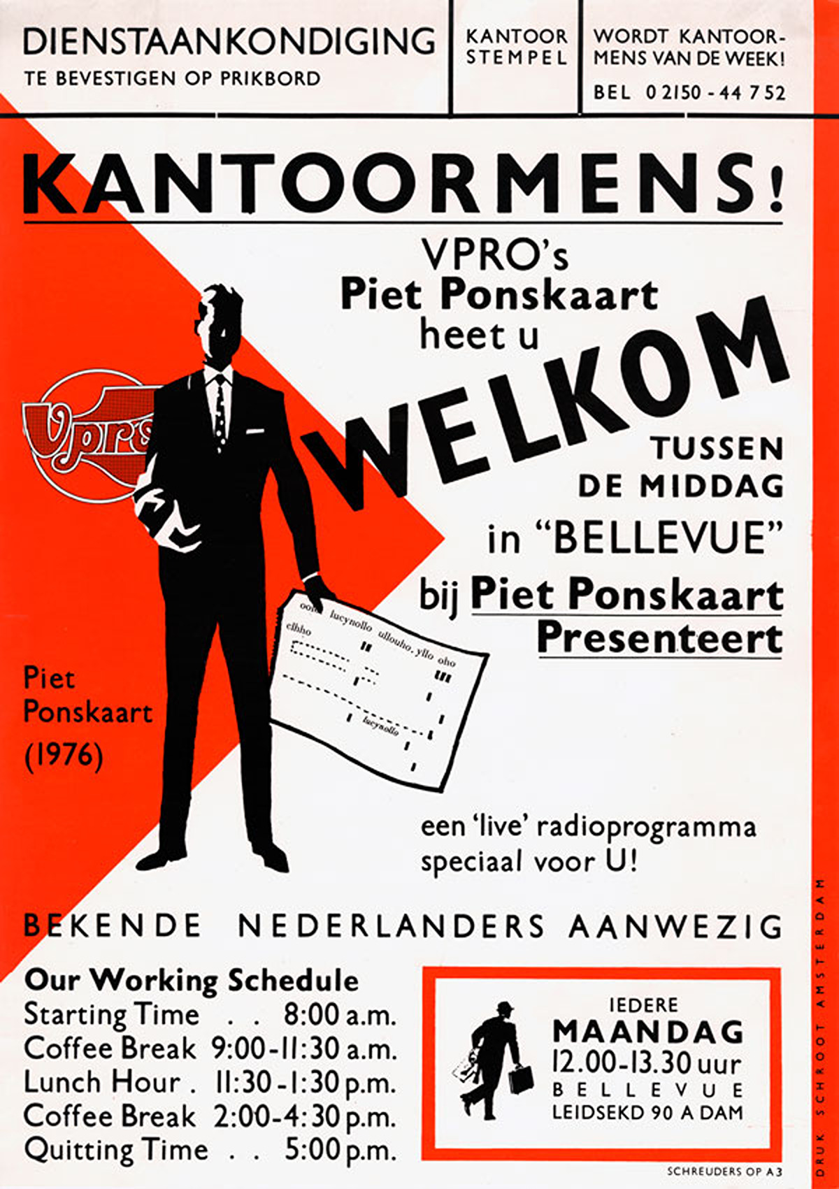 (1 januari 1976)Affiche voor VPRO-radioprogramma ‘Piet Ponskaart Presenteert’