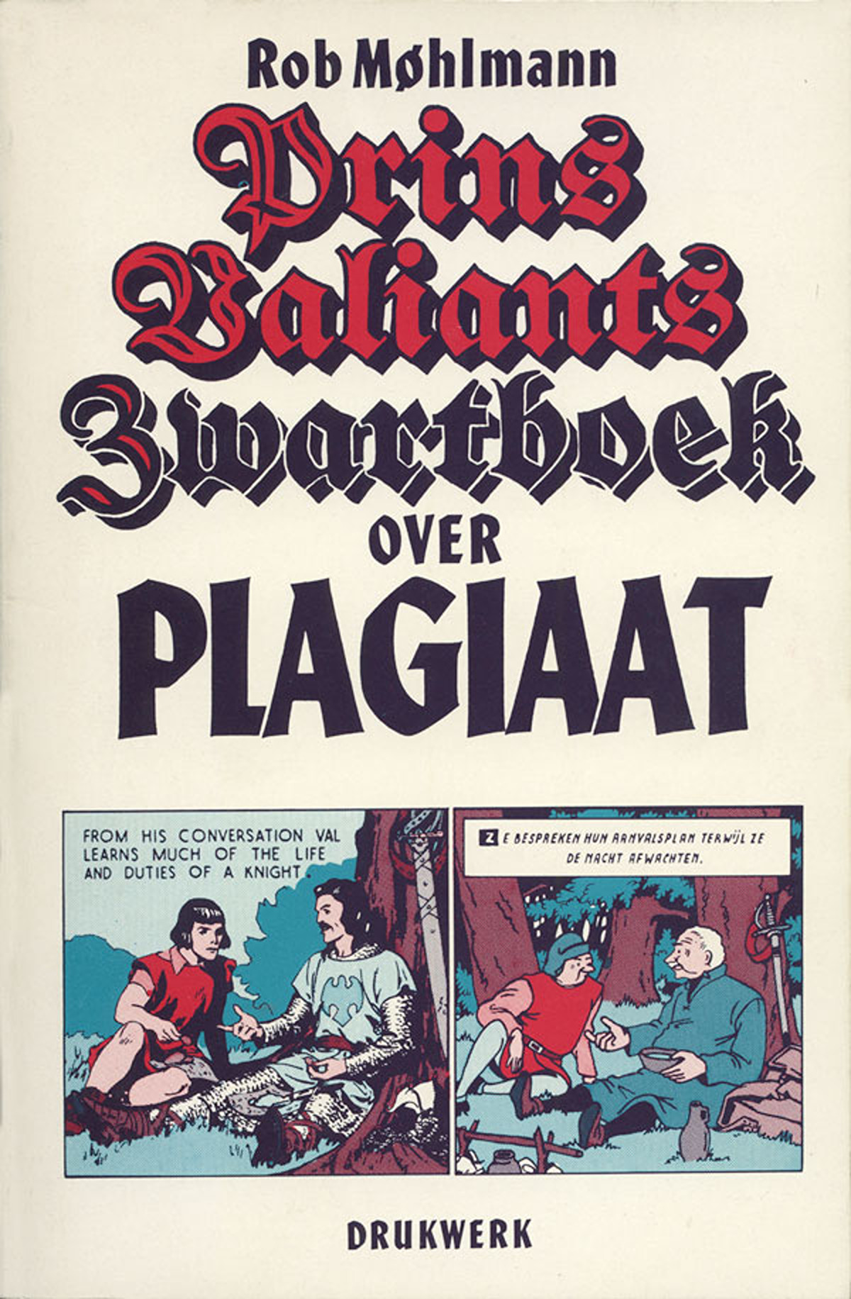 (4 maart 1982)Omslagontwerp voor Prins Valiants Zwartboek over Plagiaat van Rob Møhlmann (Drukwerk, 1982). Gedrukt in twee kleuren (rood en groen), met als mengkleur donkerbruin.