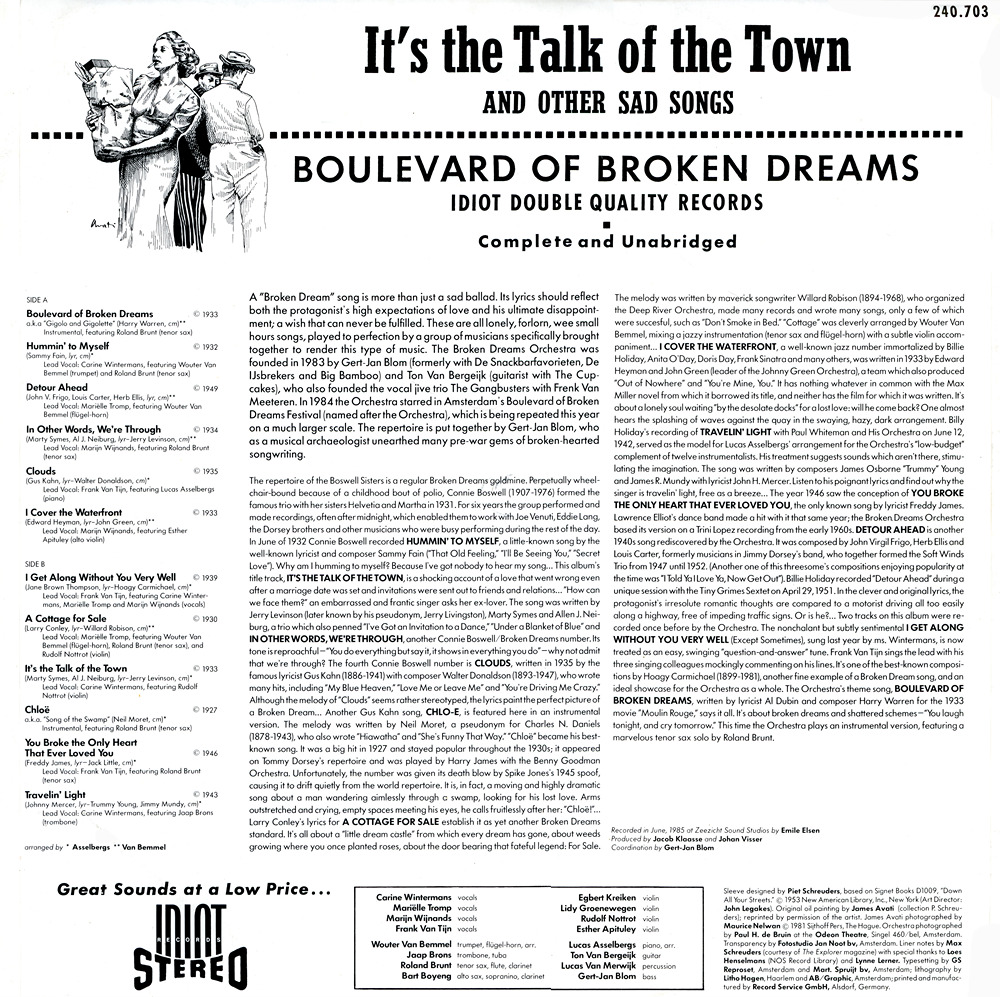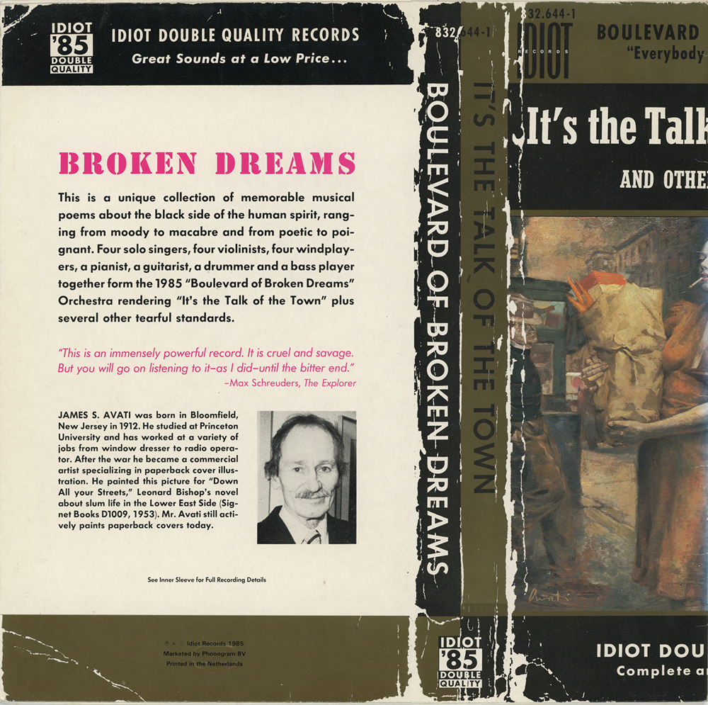 (3 juni 1985)Ontwerp LP-hoes voor het orkest Boulevard of Broken Dreams, gebruikmakend van de omslagillustratie van James Avati voor Down All Your Streets (Signet Books D1009, 1953).
