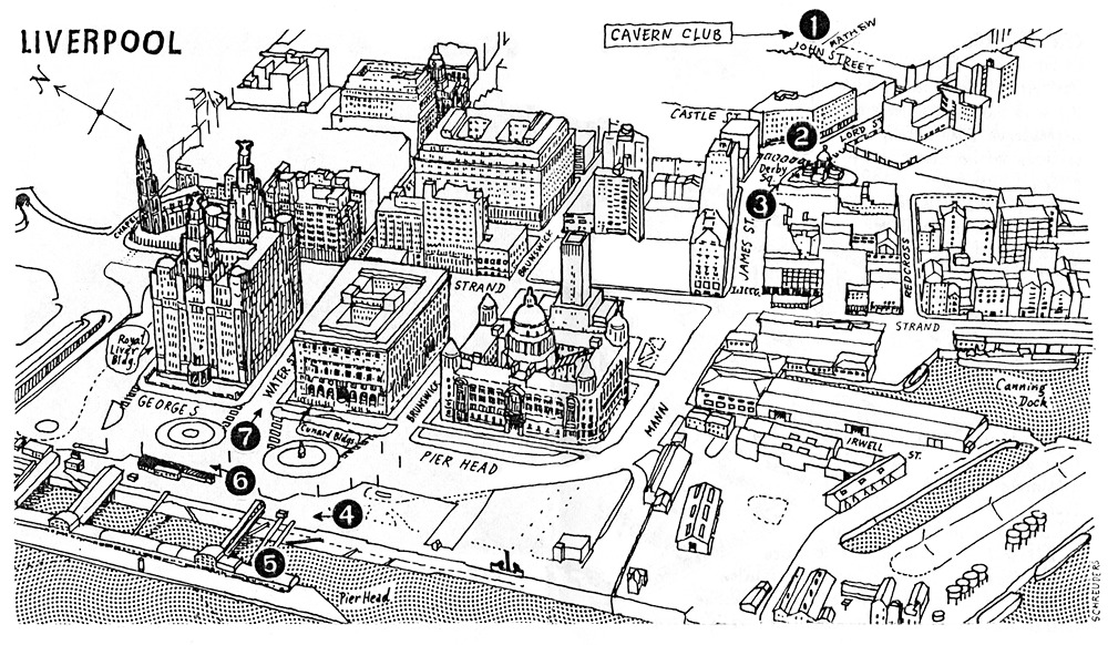 (23 mei 1985)Illustratie voor The Explorer #1 met de locaties van een fotosessie met The Beatles door fotograaf Michael Ward, 19 februari 1963