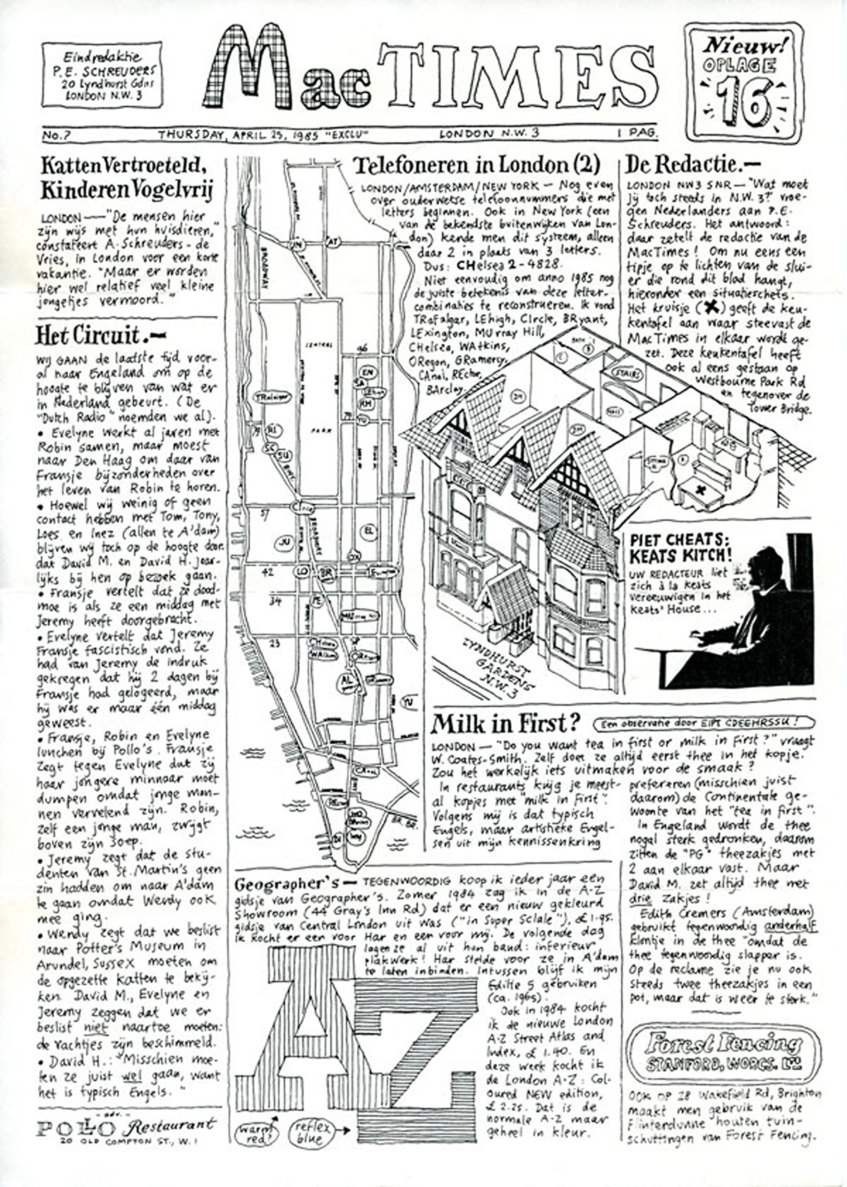 (25 april 1985)Nieuwsbrief, geschreven, gefotokopieerd en verstuurd vanuit Londen.
