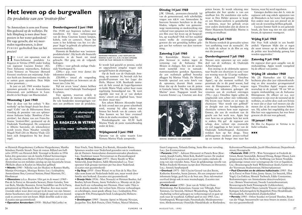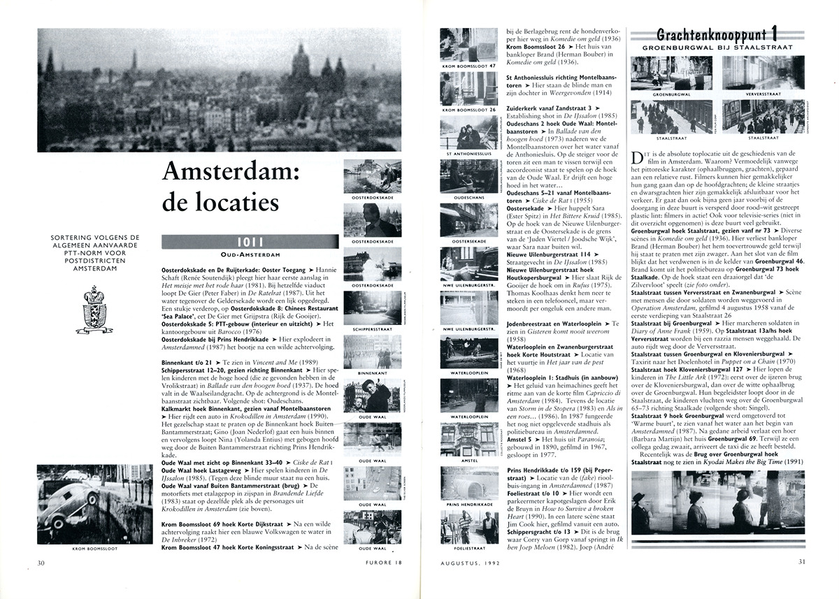 (31 mei 1992)Onderzoek naar Amsterdamse locaties van speelfilms in Furore #18 (juni 1992), met medewerking van René van Praag en Herwolt van Doornen, juli 1988 t/m mei 1992.