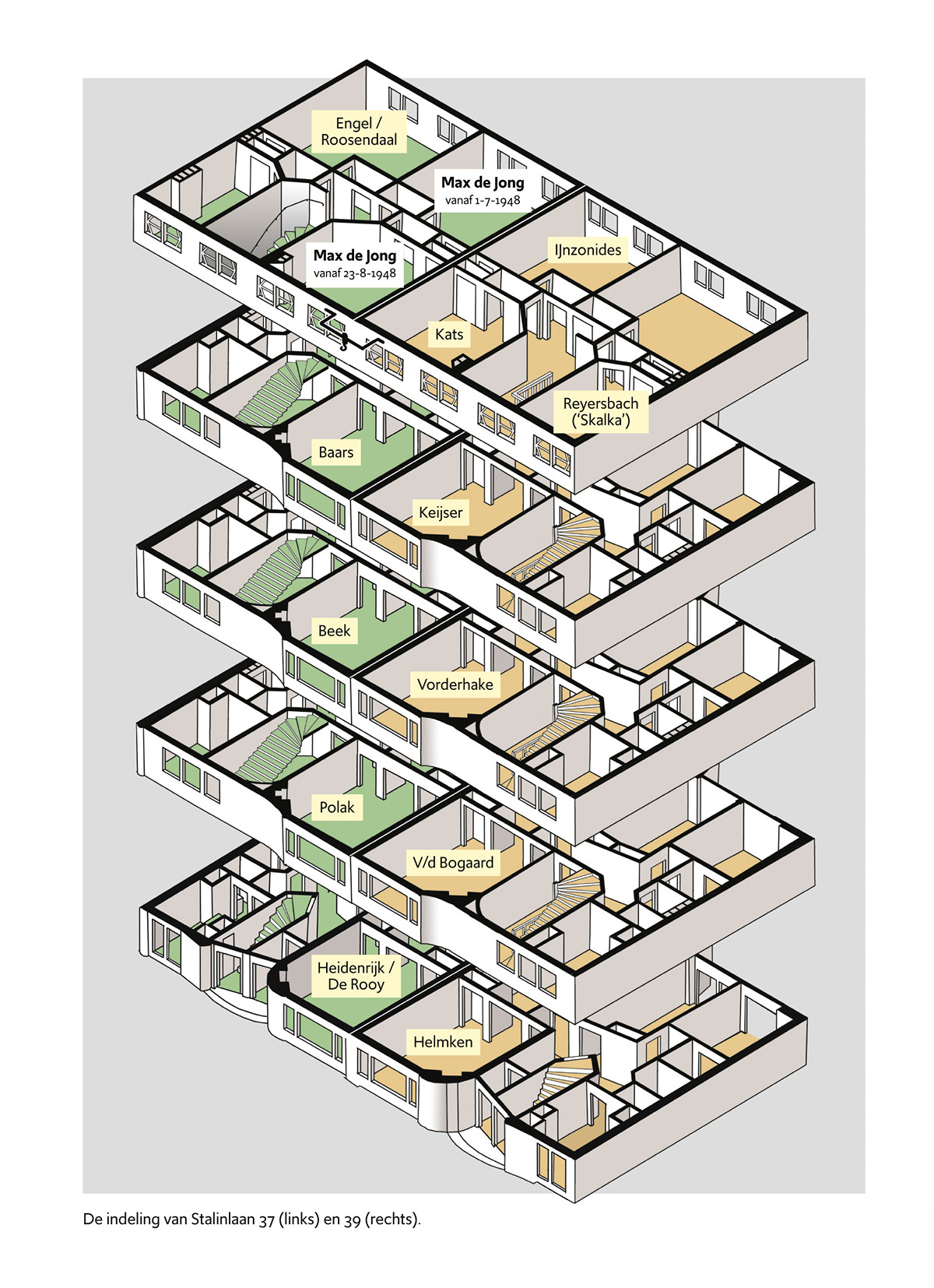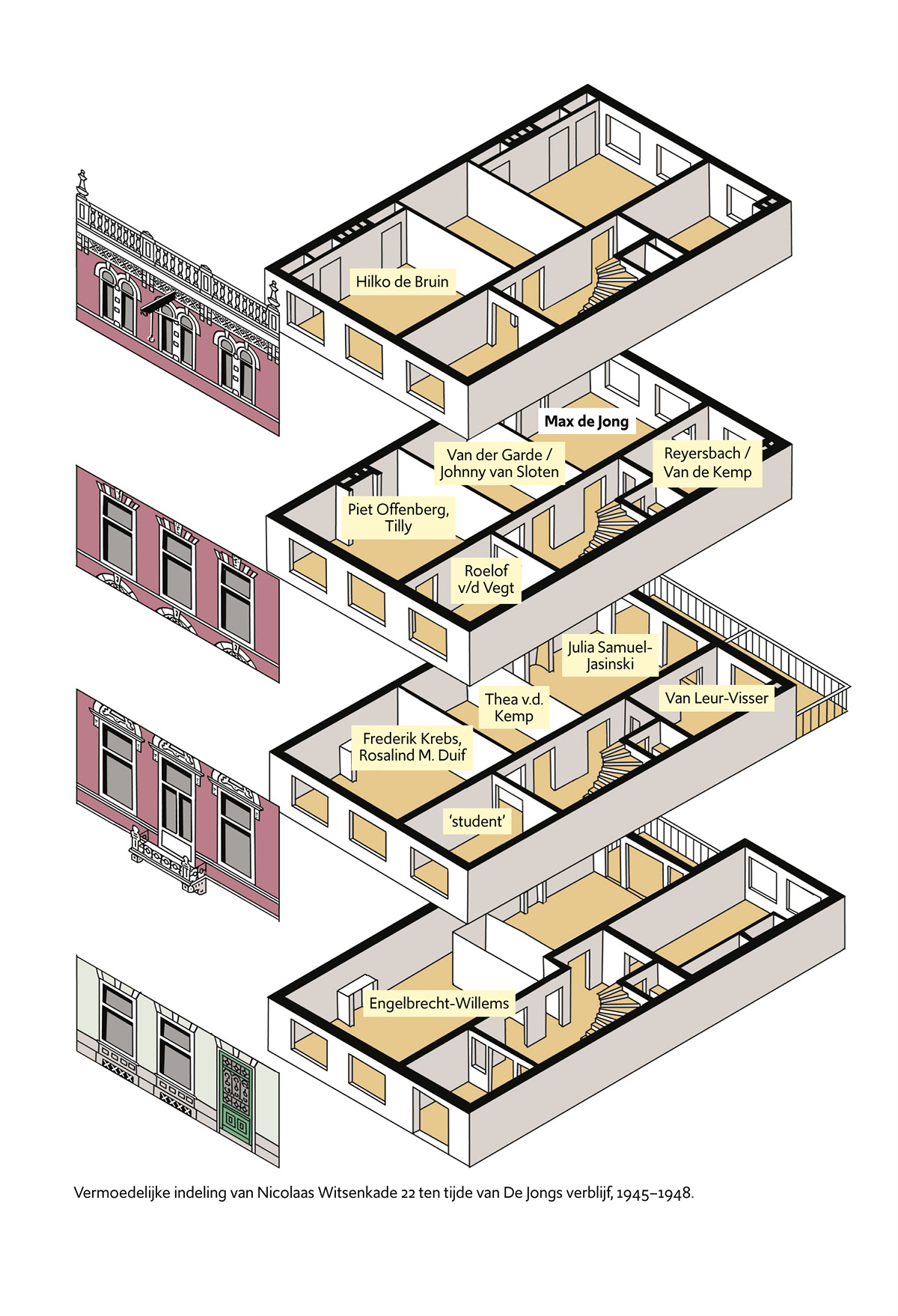 (24 februari 2023)Waar woonde de dichter Max de Jong? Illustraties voor het boek Bij het Dagboek van Max de Jong van Bob Polak (Uitgeverij Fragment, 2023). Links: Nicolaas Witsenkade 22, rechts: Stalinlaan 37-39.