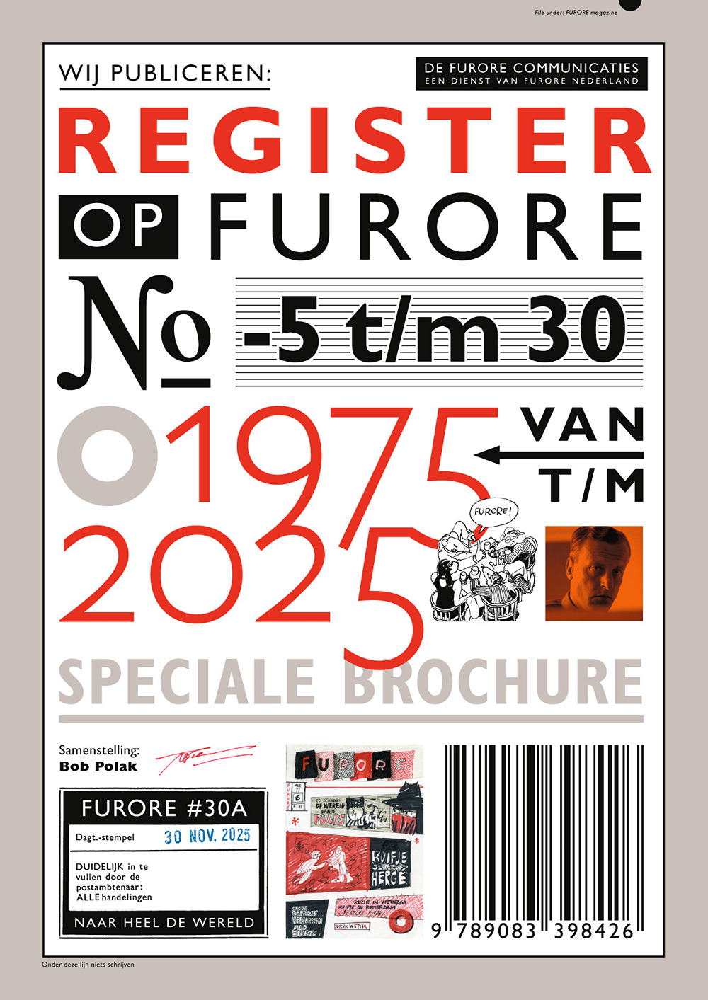 Register van Bijdragen en Register van Personen door Bob Polak; De geboorte van Furore, door Huib Ludriks en Ruprecht Diesse; interview met Piet Schreuders door Bob Polak